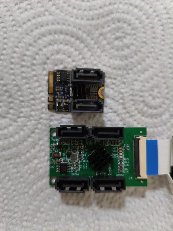 06.10.2025 כמה שידרוגים שעשיתי: תכננתי להוסיף 4 מחברי SATA במקום מתאם JMICRON שכבר יש לי עם 2 חיבורי SATA אני רוצה להוסיף cache pool עם שני כונני SSDבנפח 2-3 טרה של אינטל על מנת ליצור "RAID1" עבור שירותי NEXTCLOUD וIMMICH כדי המערך המכני לא יצטרך להתעורר משינה בכל פעם שמישהו ירצה לפתוח קובץ/תמונה אז קניתי מתאם NGFF עם בקר ASMEDIA עבור ארבע חיבורי SATA לצערי לא הצלחתי לגרום לו לעבוד, כנראה שהגיע תקול, אליאקספרס זיכו אותי. היות והמתאם JMICRON הקיים אפשר לי רק חיבור SATA אחד עקב מגבלת מקום, רכשתי מאריך שאוכל לנצל לפחות את החיבור שהיה חסום פיזית. הכל עבר בשלום, הוספתי SSD 1TBלצורך בדיקה, אך אני עדיין מחפש דרך להוסיף עוד חיבור SATA אחד לפחות מבלי להקריב חיבור M.2 עבור זה. אולי אזמין שוב את הASMEDIA בתקווה שהפעם הוא יעבוד. עלות השידרוג למאריך : $6.25 מאריך למתאם המצב הקודם בחיבורי ה SATA: המצב אחרי : כרטיסי הרחבה 4 פורטים והמאריך : עלות כרטיס ASMEDIA : $17.47 asmedia 4 sata ports רכשתי כרטיס מסך משומש מסוג A2000 6gb , הוא קיים גם בגירסת 12,16 גיגה לשימושי AI עבור ביצועים טובים יותר עבור TRANSCODING ולימוד מכונה, הכרטיס פותח לי דלת לכל מיני פרויקטים שאני שוקל להמשך. (זיהוי פנים/DVR , קצת Aiוכו') העניין עם הכרטיס שרכשתי הוא הגודל הפיזי שלו שתופס 2 חיבור PCI SLOT, ובמארז שלי JONSBO n2 אין פיזית מקום כזה, אז הזמנתי קירור מיוחד שהופך את הכרטיס ל PCI SOLT יחיד, קירור מסיבי וכבד מנחושת. בנוסף הייתי צריך ליצור סקריפט לניהול המאוורר עם מהירות משתנה דינמית כי ברמת ה FRIMWARE של הכרטיס מנסה לעבוד על מינימום והמהירות עולה בצורה לא משביעת רצון, הסקריפט עובד נהדר ומתאים את המהירות בהתאם לטמפ עם מהירות בסיס 45% במקום 30% . בדיקות בעומס הכרטיס מגיע לטמפ של 68-70 מעלות, במקום 89 מעלות עם פרופיל המאוורר המקורי. הכרטיס מבצע הפעולות הרבה יותר מהיר ובקלות ביחס לכרטיס הקודם P400 עלות הכרטיס 600 ₪ עלות הקירור 115 יורו עד לבית (465 ₪) https://n3rdware.com הכרטיס במצבו המקורי: פירוק והחלפה המצב הקודם : טמפ לאחר החלפה: