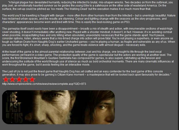 הביקורת של Empire Online משווה חלקים מהמשחק לסרט "האזרח קיין" ומכתירה אותו כיצירת מופת וכ"משחק הטוב ביותר לקונסולות בדור הנוכחי".