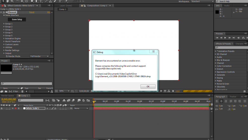 פורסם 2016 במאי 149 שנים מחבר תקציב עד 400 אלה אם כן שזה ממש קריטי בכל אופן אני אנסה להסביר ואני גם לא בטוח שזה באשמת הכרטיס מסך אבל קרוב לוודאי שכן ניסיתי לא מזמן להתקין לאפטר אפקט פלאג אין שנקרא ELEMENT 3D והוא אמור להכניס גישה לאובייקטים תלת מימדיים בתוכנה משום מה הפלאג אין לא עבד לי במחשב הנייח עם כרטיס onbord , אמנם עבד בלפטופ עם R5 REDION 2G מצורפת תמונה עם הדיבאג שעלה: