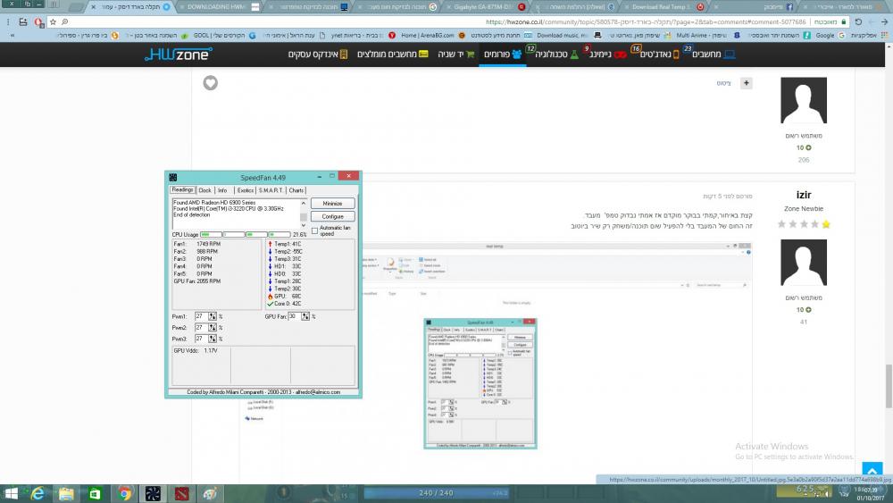 פורסם 2017 באוקטובר 18 שנים מחבר קצת באיחור,קמתי בבוקר מוקדם אז אמתי נבדוק טמפ' מעבד. זה החום של המעבד בלי להפעיל שום תוכנה/משחק רק שיר ביוטוב שאני מפעיל זה גם מגיע ל68 נערך 2017 באוקטובר 18 שנים על-ידי izir הוספת תמונות