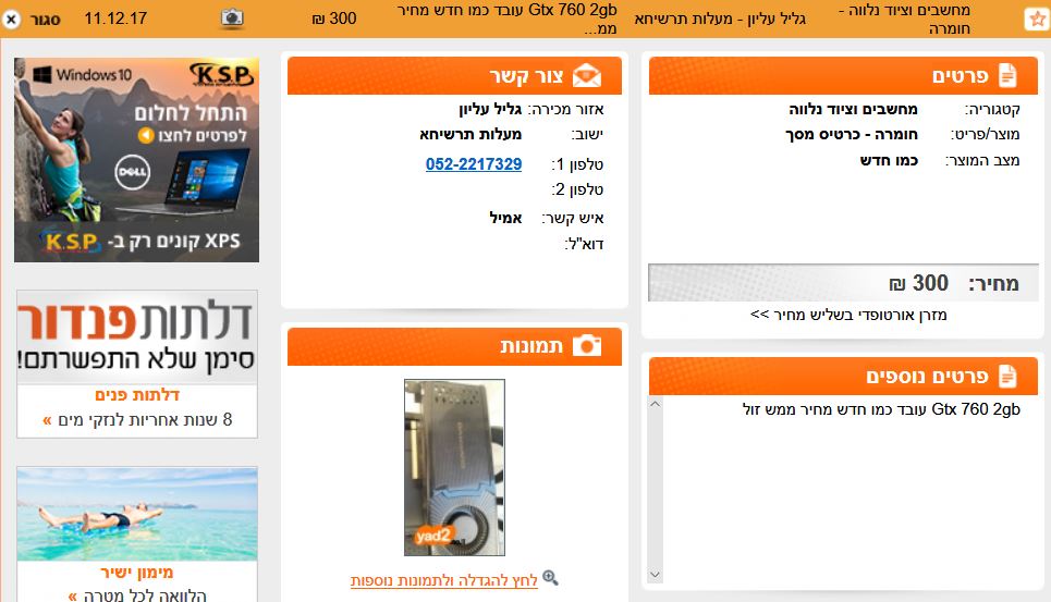 פורסם 2017 בדצמבר 247 שנים ציטוט של nec_000 ^אור, זה בדיוק המודעה שכוונתי אליה: ה- GTX670 במחיר 250 שח. לצרכים של פותח השרשור גם זה כרטיס אובר קיל. צריכים למצוא לו משהו באזור 100 שח, לא צריך מעבר. נחפש מודעה ראויה, ואם נמצא נשלח קישור. לשואל: החיפוש נעשה בלוחות יד 2 - www.yad2.co.il ברור ברור, פשוט קישרתי אליה לצערי בטווח ה100 ש"ח ראיתי רק כרטיסים לא ראויים, ולכן אפילו לא טרחתי לקשר לשם. אם תמצא משהו טוב פרסם כאן! הכרטיס המשומש האחרון שרכשתי ב50 שח היה הHD3450 מאיביי כולל משלוח