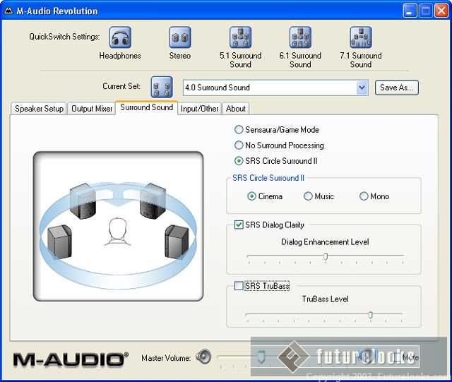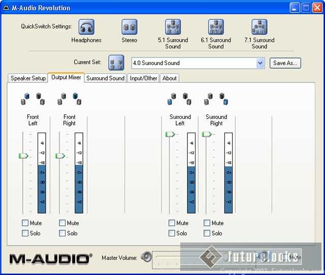 פורסם 2004 בספטמבר 1621 שנים מחבר לינק לפרטי הכרטיס http://www.m-audio.com/products/en_us/Revolution71-focus.html לינק ל-MANUAL יש בזה את כל תמונות התפריטים http://www.m-audio.com/images/en/manuals/Revo71-Manual-EN.pdf תמונות של כל הטאבים של לוח הבקרה של הכרטיס תמונות יותר גדולות אני חייב לציין שאין ב VOLUME PROPERTIES של הוינדוס את האופציה "מתקדם" שם ניתן לסמן SPDIF OUT כפי שיש בכרטיסי כריאייטיב תודה רבה