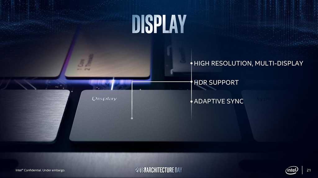 מסתמן שלליבה הגרפית הזאת תהיה היכולת להוציא תצוגה גם דרך חיבור USB Type-C, ולתמוך בהצגת וידאו ברזולוציית 8K ובטכנולוגיית HDR.