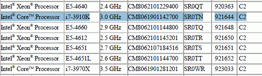 אתר החומרה expreview.com חושף מסמך שבו נראה המעבד, Core i7 3910K כחלק מקו השקת המעבדים של התושבת. המעבד, מופיע כמשושה-ליבות הפועל בתדר של 3 גיגה-הרץ.
