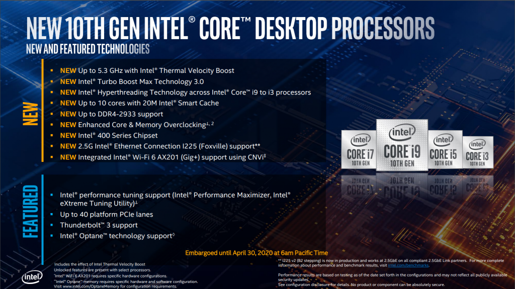 לאחר חרושת שמועות בת שבועות ארוכים, היום אינטל מכריזה באופן רשמי על סדרה חדשה של מעבדים שולחניים – הם סדרת Core 10th Gen (הדור העשירי) אשר מגיעים עם תושבת שולחנית חדשה גם כן – LGA1200.