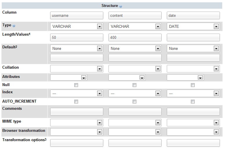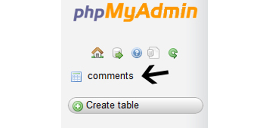 - טבלת ה-comments תורכב מ-3 עמודות עיקריות: שם המשתמש (שם המגיב), תוכן התגובה והתאריך שבו המשתמש הגיב. אם נסתכל היטב נשים לב שיש לנו 2 עמודות בלבד. בכדי להוסיף עמודה שלישית נקליד בתיבת הטקסט המופיע בחלק התחתון הימני של המסך "1" ונלחץ על הכפתור "Go". המספר שהקלדנו מתאר את מספר העמודות שאנו רוצים להוסיף.