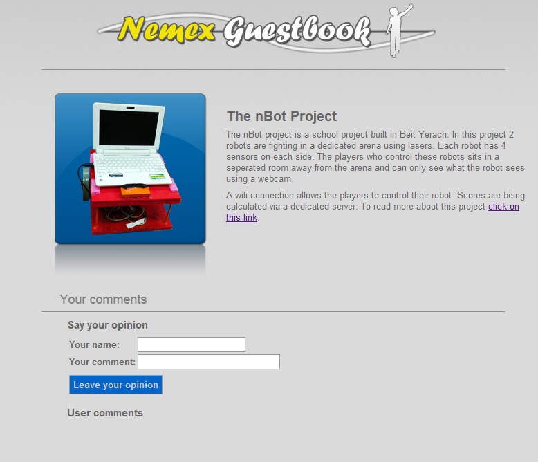 את ספר האורחים לא נכתוב מ-0. קוד ה-HTML שלנו כבר כתוב כולל העיצוב. כל אשר אנו נכתוב יהיה צד השרת (קוד ה-PHP) אשר בעצם מהווה את העיקר ללמידה שלנו. נראה כיצד אנו מתחברים לשרת ה-MySQL, שולפים רשומות, מוסיפים רשומות וכו'.