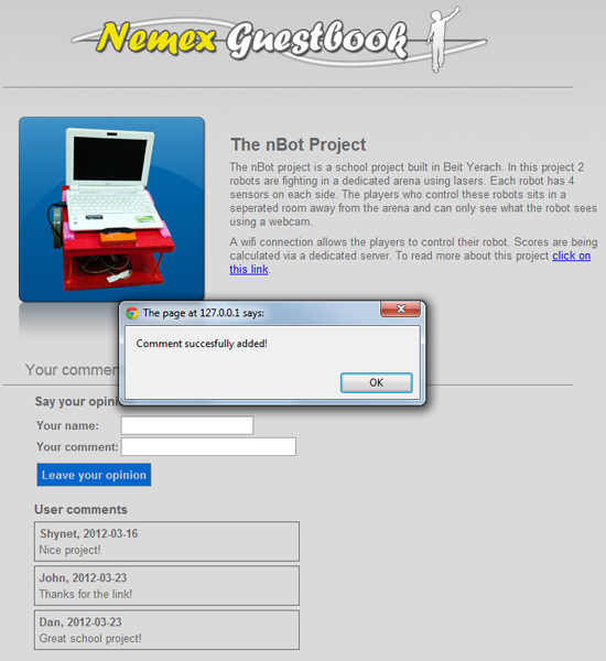 זהו! כעת כאשר נכניס תגובה ונלחץ על כפתור ה-"Leave your comment" ההודעה הבאה תופיע: