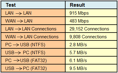 - מנגנון ה-NAT (הפועל בממשק ה-WAN<->LAN) מאפשר מהירות המתקרבת ל-500Mbps. מהירות זו מאפשרת תמיכה בחיבורי WAN מהירים מאוד, הן ברשת הכבלים והן ב-Unlimited.