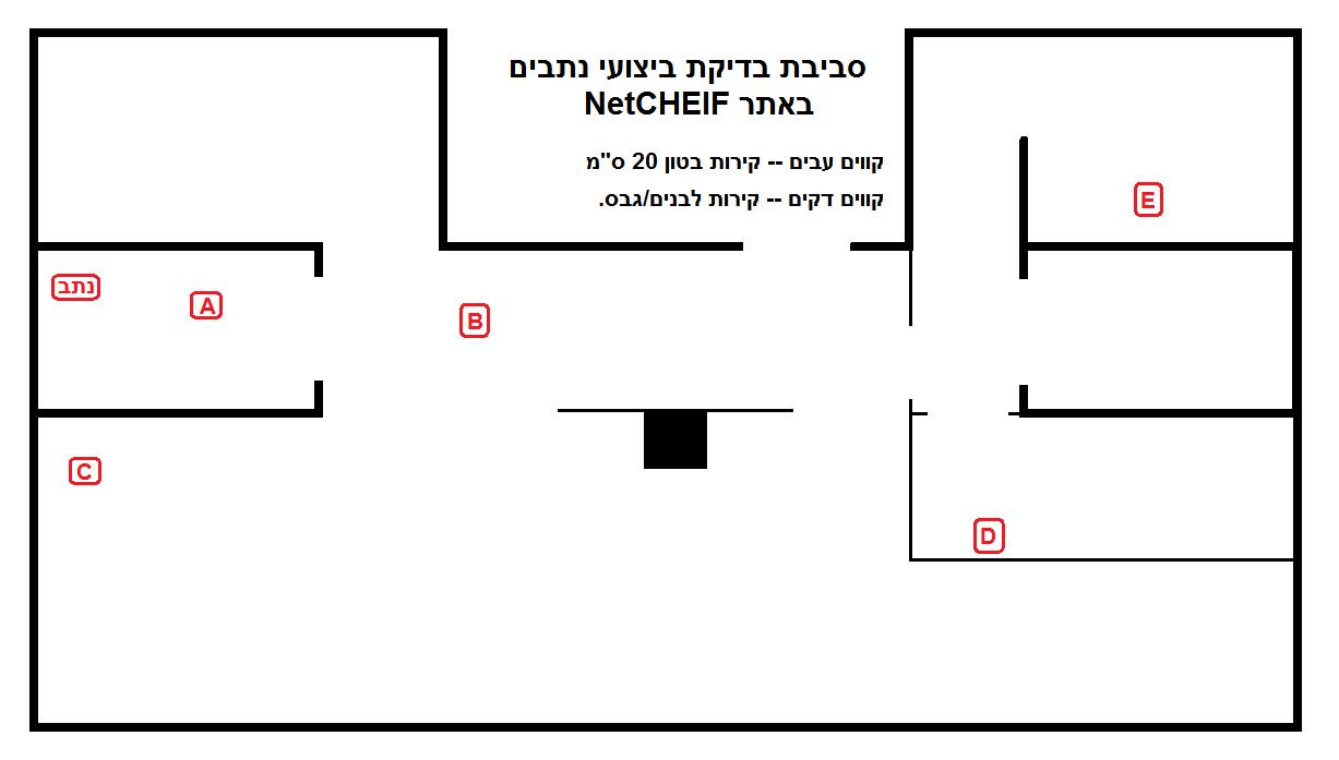 הערה: בדיקות הביצועים נערכות בדירה הממוקמת בבית משותף, בסביבה עירונית צפופה, הכוללת (פרט לנתב הנבדק) למעלה מ-10 רשתות הפועלות בתדר 2.4Ghz ורשת אחת הפועלת ב-5Ghz. עומס הרשתות הזה מייצר רעש אלקטרומגנטי משמעותי המשפיע על תוצאות הבדיקה. לפיכך הביצועים האלחוטיים שנמדדו על ידי מהווים רק אינדיקציה ליכולתו של הנתב ובהחלט יתכן שבסביבה שונה ובמועד אחר יתקבלו תוצאות אחרות. בנושא זה פירסמתי בבלוג שלי פוסט ארוך ואני מאוד ממליץ לקרוא אותו בעיון.