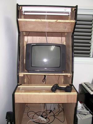 הייתה לי התלבטות באם להשתמש במסך מחשב ישן בגודל 17" או במסך טלוויזיה אך לבסוף החלטתי להשתמש במסך טלוויזיה מכיוון שבפעולתו הוא דומה יותר למסך מכונת הארקייד מאשר מסך המחשב. השתמשתי בטלוויזיה 20" ישנה שהייתה לי בבית (המארז תוכנן כך שטלוויזיה עד גודל 25" תוכל להתאים). לטלוויזיה עצמה הייתה מאחור כניסת SCART דבר האפשר את חיבור הטלויזיה ביתר קלות אל המחשב. כמו כן מעל לטלויזיה, במקום המיועד לכך, התקנתי נורת פלורוסנט שתאיר את השלט העליון שיבוא מעל.