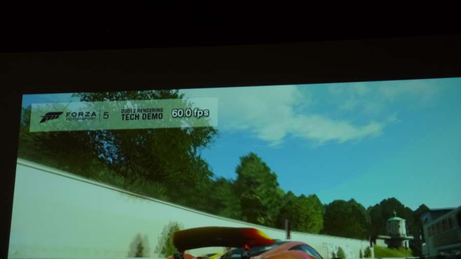 "Chris Tector of Turn 10 Studios presented a demo of Forza Motorsport 5 running through Direct3D 12 on PC. Tector was quick to point out Direct3D 12 would allow developers to more efficiently handle resources, but it was difficult to see exactly how Direct3D 12 was really impacting the game's performance based on the demo. Overall, the game looked more or less the same as it does on Xbox One."