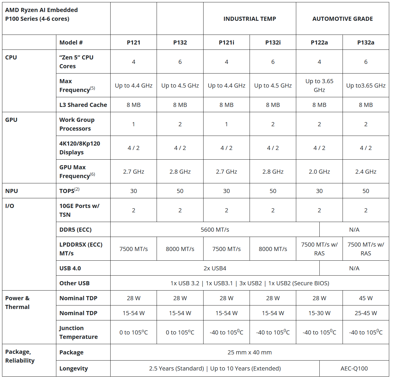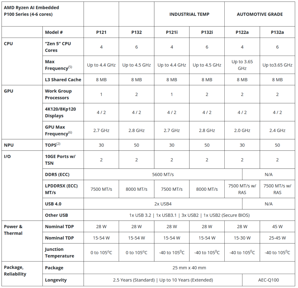 הטבלא הזאת מתארת את מעבדי ה-Embedded החדשים, אשר ישבו על לוחות מודפסים קטנים ולרוב יגיעו במחשבי קצה קומפקטיים, אולי אפילו בעלי קירור פסיבי לחלוטין. חברות כמו Lenovo, Aaeon, Advantech ו-Axiomtek הן חלק מהשמות המוכרים בעולים מחשבי הקצה (Edge Computer) והן יטמיעו את מעבדי ה-Embedded בתצורות כאלה ואחרות.