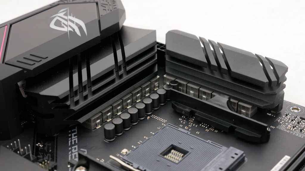 גופי הקירור שעל מייצבי המתח הם בעלי שטח פנים מקובל. לא מדובר פה במניפות אלומיניום דקות, ואין צינורות נחושת כאן אבל אין כל בעיה עם גופי הקירור הללו. לצורך בדיקה, התקנו מעבד Ryzen 9 3900X בעל 12 ליבות בלוח האם הזה, ובדקנו אותו במאמץ מירבי לאחר שעה. טמפרטורת המייצבים לא עלתה על 75 מעלות צלזיוס ללא זרימת אוויר על גופי הקירור עם טמפרטורת חדר של 25 מעלות צלזיוס – זו תוצאה טובה למדי.