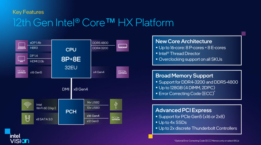 סדרת ה-HX, אם להסביר במשפט בודד, היא למעשה סדרת מעבדים למחשבים ניידים שעושים שימוש מלא בארכיטקטורה ובממשקים שיש למעבדים שולחניים להציע. כתוצאה מכך, חלקם אף כוללים קונפיגורציה של 8 ליבות P-Core לצד 8 ליבות E-Core יעילות, תמיכה בזיכרון DDR4 ו-DDR5 בשני ערוצים ועד ארבעה מקלות, ערוצי תקשורת מסוג PCI-Express 5.0 לגרפיקה ועוד.