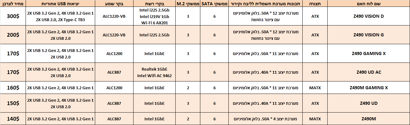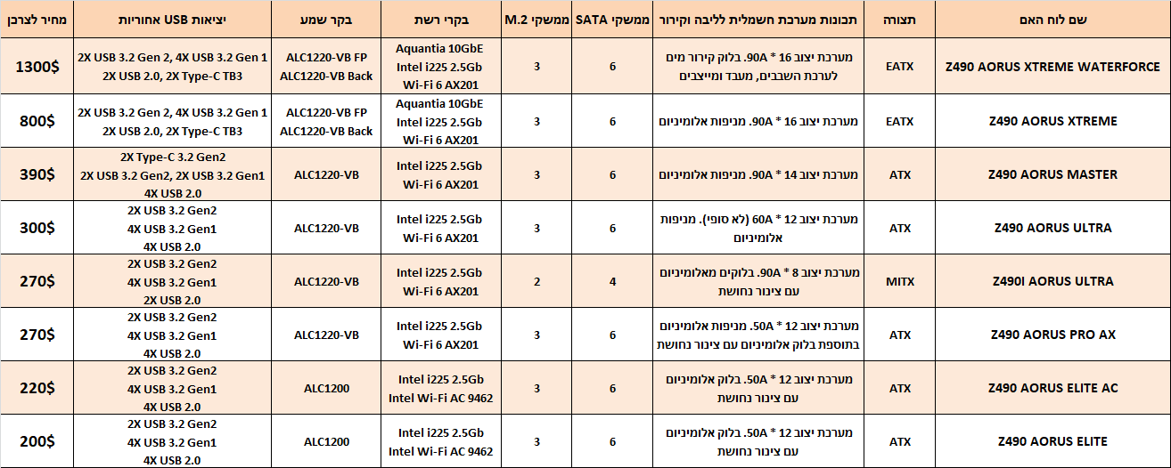 מקווים שעשינו לכם מעט סדר בבלאגן, ונביא לכם סקירות על מספר לוחות אם בעלי ערכת השבבים Z490 של GIGABYTE להתרשמות ממש בקרוב.