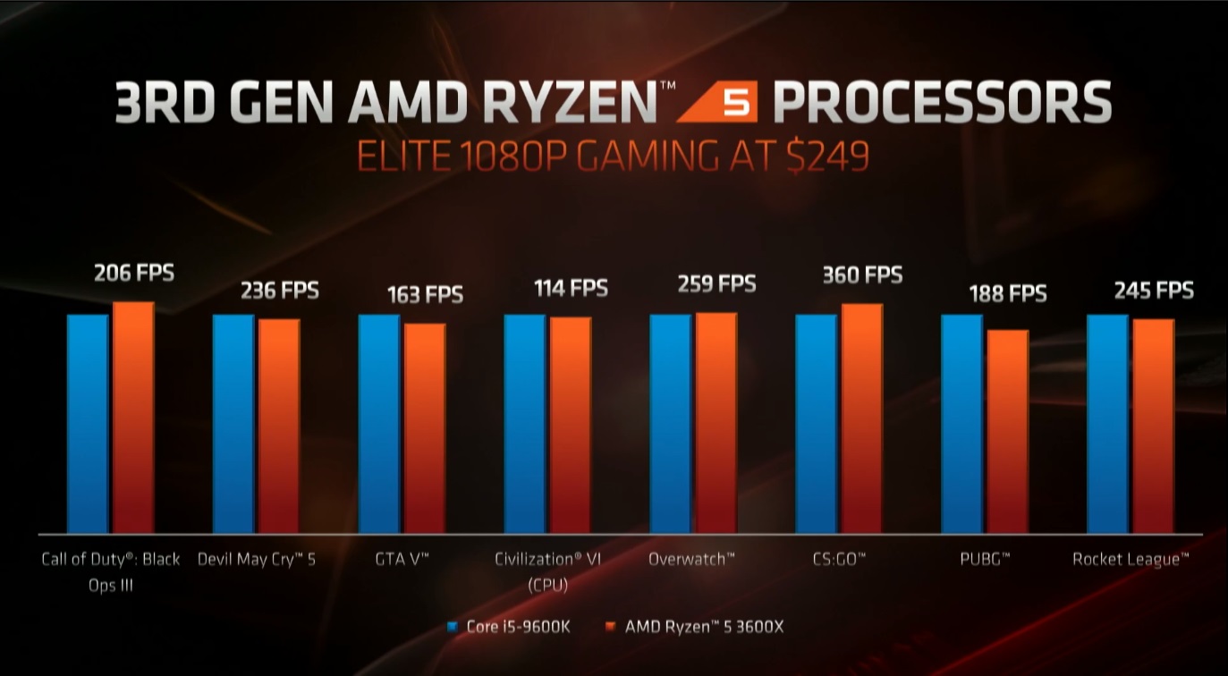ה-Ryzen 5 3600X הוא מעבד משושה-ליבות הבא לכבוש את שוק הביניים עם תג מחיר של 250 דולר ישירות מול ה-Core i5 9600K. כאן אנחנו רואים תחרות מעט יותר יותר חיובית לצד AMD בהשוואה. בהחלט נראה מבטיח!