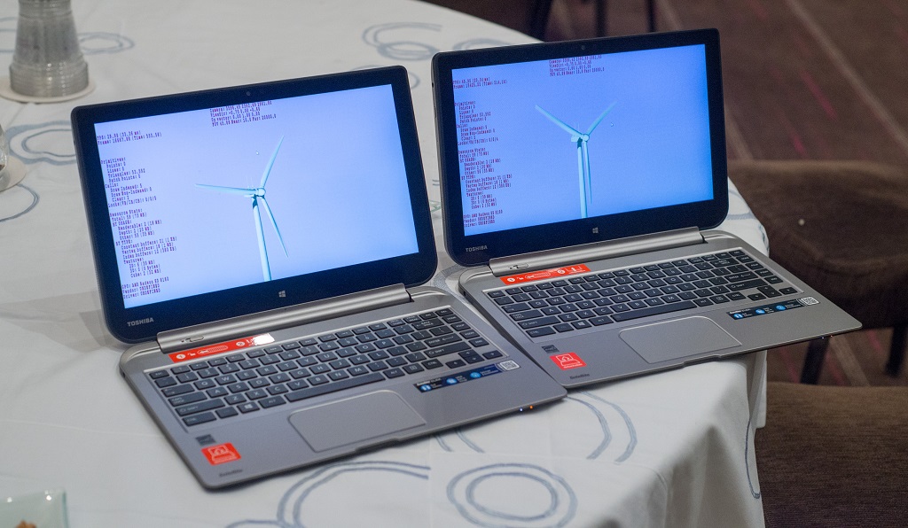 הדגמה של הטכנולוגיה מכנס CES על מחשבים ניידים של טושיבה
