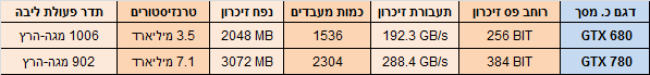 לפניכם ההבדלים הטכניים בין GTX 680 לבין GTX 780 אשר מהם נוצר הבדל הביצועים: