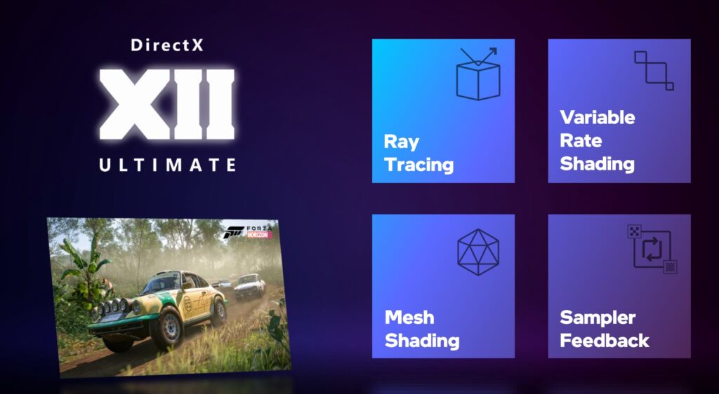 אינטל מציינת כי כרטיסי המסך החדשים תומכים ב-DirectX 12 Ultimate של מיקרוסופט, המאפשרת בין היתר הטמעה קלה של עקיבת קרניים, שינויי איכות בזמן אמת לצורך שיפור ביצועים ובעתיד אולי נראה את כרטיסי המסך של אינטל משתמשים גם ב-Direct Storage, טכנולוגיה המאפשרת משיכת נתונים מאמצעי האחסון מבלי לעבור במעבד הראשי.