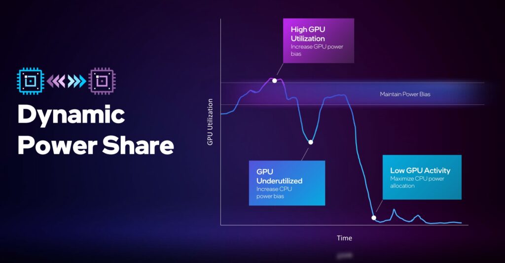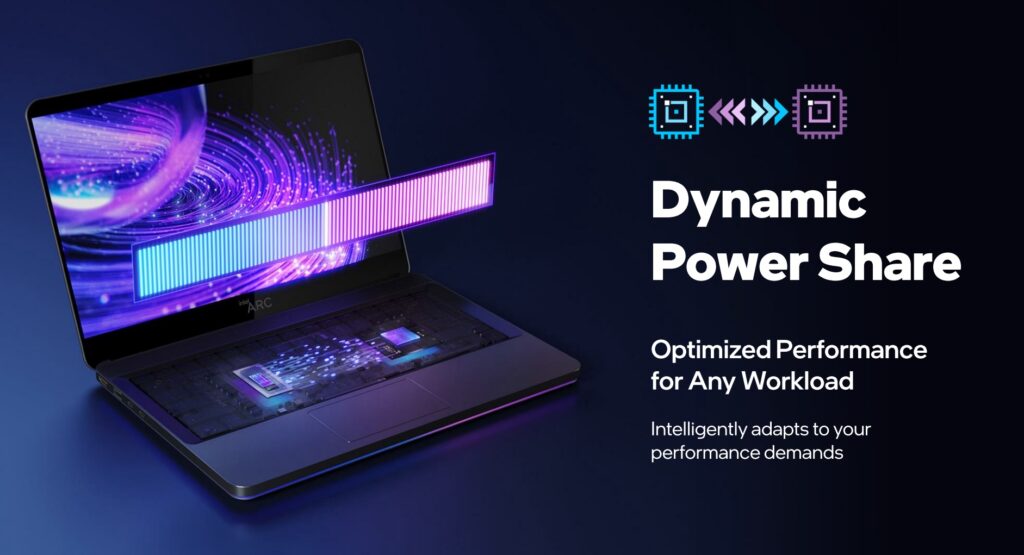 היות ואינטל אחראית גם לליבה הגרפית המובנית במעבד הראשי וגם לכרטיס המסך המוקדש במערכת, היא יכולה להטמיע טכנולוגיות של חסכון בחשמל וגם האצת ביצועים משולבת. כזאת היא ה-Dynamic Power Share.