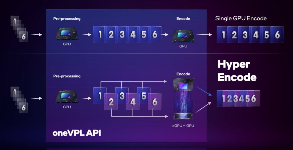 טכנולוגיית שיתוף פעולה נוספת בין הליבה הגרפית המובנית במעבד לכרטיס המסך המוקדש היא ה-Hyper Encode. שתי הליבות הללו יכולות להשתתף בתהליך יצירת וידאו לטובת עבודה מהירה יותר עם תוכנות כמו Davinci Resolve או Adobe Premiere.
