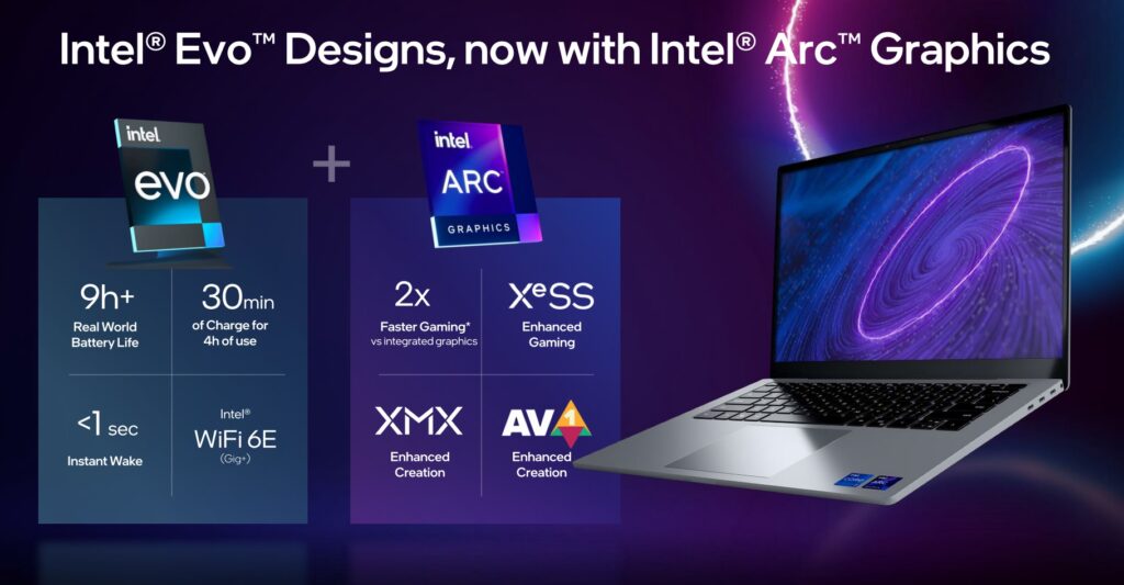 מותג ה-Evo של אינטל ימשיך להתקיים במחשבים ניידים חדשים אשר ירצו בכך. על פי אינטל מדובר בשילוב חשוב ומנצח ליוצרי תוכן במשקל קל. ישנה הבטחה לחיי סוללה של יום עבודה, לטעינה מהירה ותמיכה בתקנים מתקדמים.