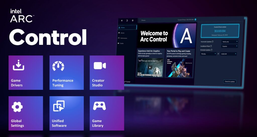 אחרי הכל, מהו כרטיס מסך בלי תוכנת שליטה? לצורך שליטה ובקרה של כרטיסי המסך הכינה אינטל דרייבר חדש אחרי מתיחת פנים והוא ה-ARC Control.