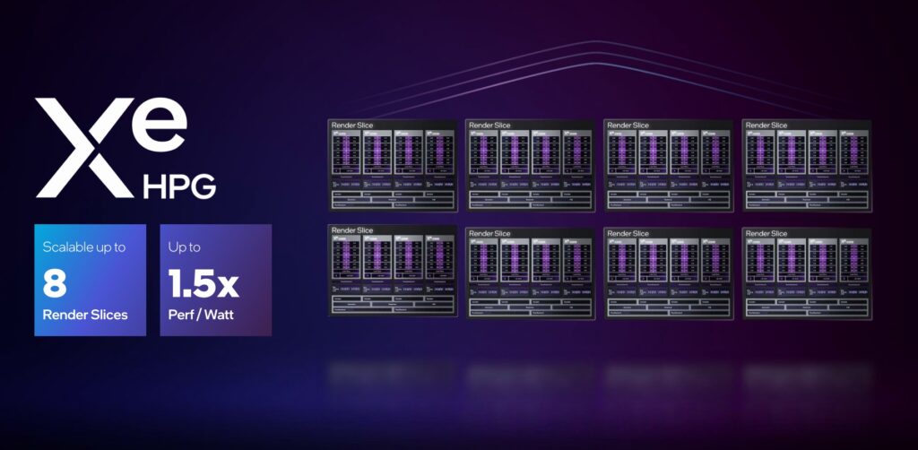 לצורך הפקת ארכיטקטורה המתאימה לגיימינג והאצות תלת-מימד רציניות, אינטל ביצעה מתיחת פנים באבני הבניה של הליבות הגרפיות שלה. Xe-HPG היא המנוע שמאחורי כרטיסי המסך החדשים כאשר הטענה היא לשיפור של עד 50 אחוזים יחס צריכת חשמל לביצועים.
