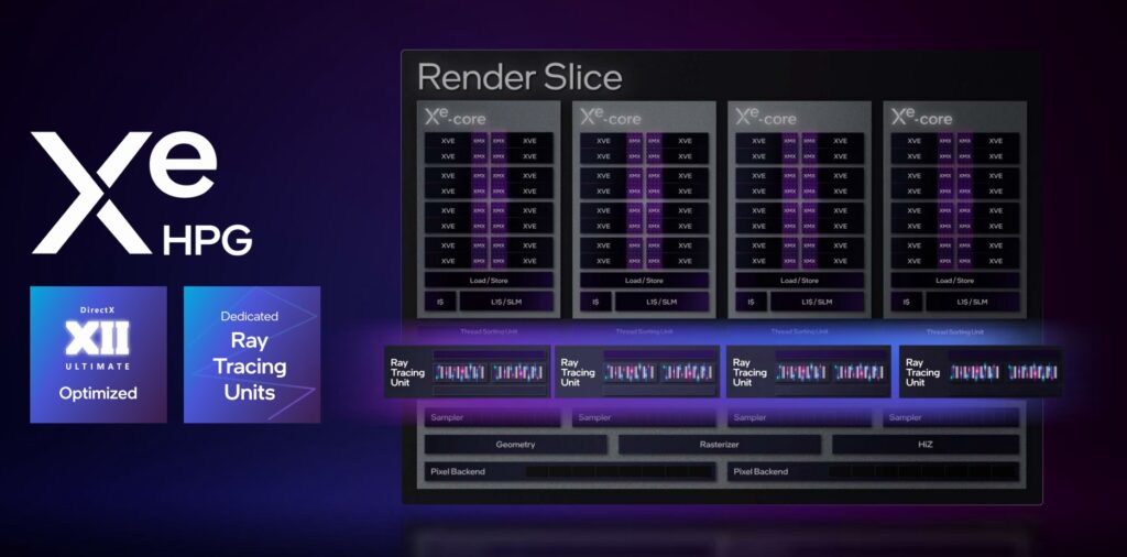 Ray Tracing Units – בד בבד ובתוך קבוצות ה-Xe Cores, כל קבוצה מכילה יחידת עיבוד לעקיבת קרניים.