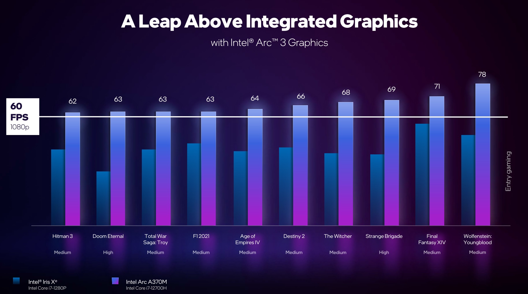 המטרה והתחרות של ה-A370M הופכת לברורה כתוצאה מהשוואות מהסוג הזה. אינטל רוצה להציג מוצר שיהווה תחליף לכרטיסי המסך המוקדשים הזולים בשוק שמוצעים במחשבים ניידים דוגמת MX450 של NVIDIA או Radeon 680M של AMD. זאת, בעוד בנוסף לביצועי תלת-מימד משופרים הליבה הגרפית גם מגיעה עם כל האצות הוידאו המתקדמות אותן היא מציינת.