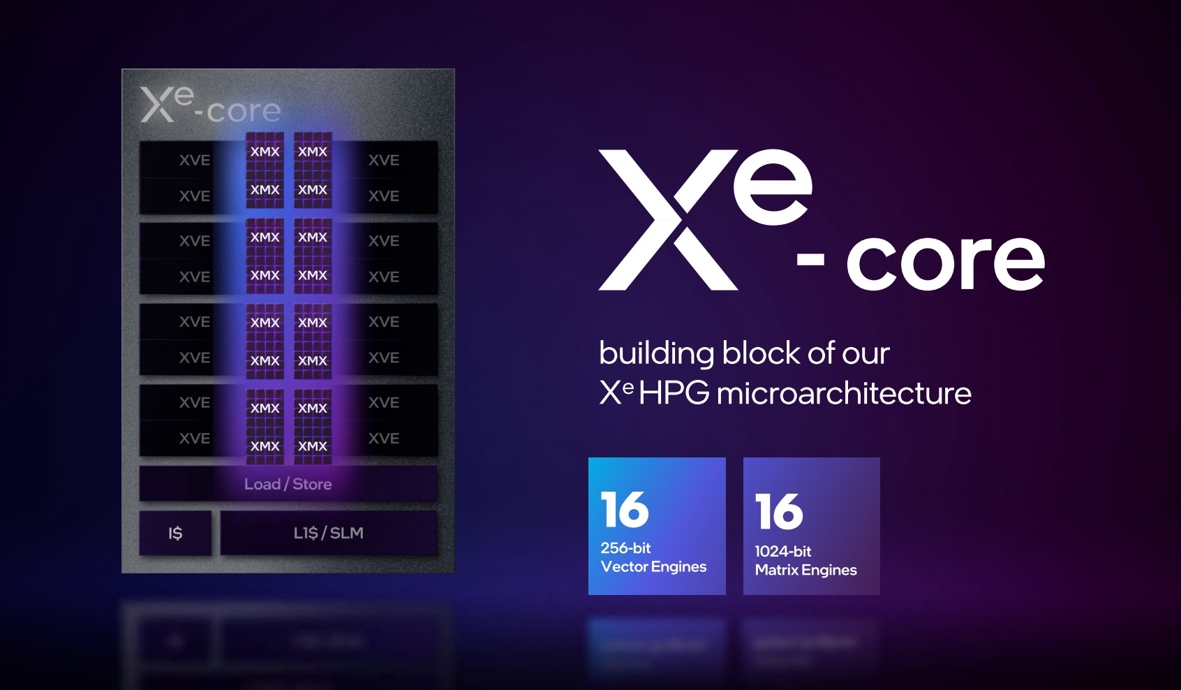לצורך הפקת ארכיטקטורה המתאימה לגיימינג והאצות תלת-מימד רציניות, אינטל ביצעה מתיחת פנים באבני הבניה של הליבות הגרפיות שלה. Xe-HPG היא המנוע שמאחורי כרטיסי המסך החדשים כאשר הטענה היא לשיפור של עד 50 אחוזים יחס צריכת חשמל לביצועים.