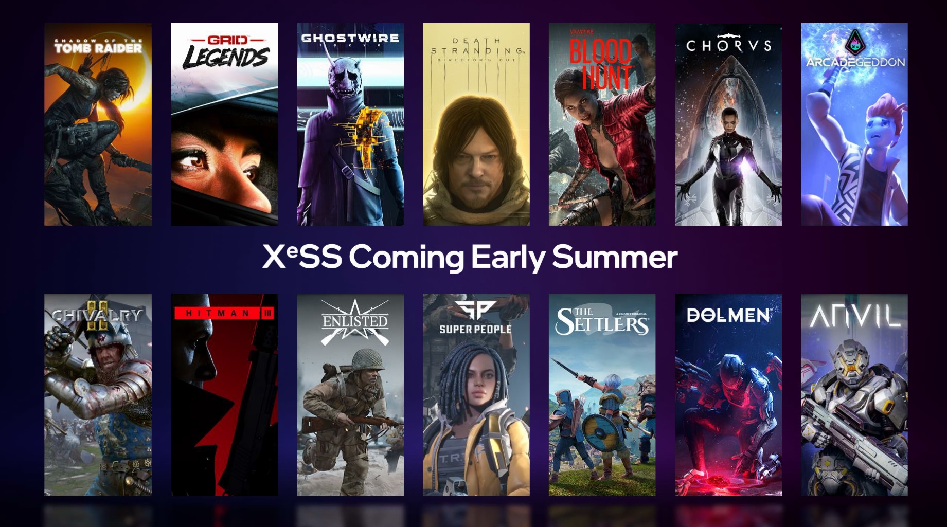 אינטל מנצלת את ההזדמנות ומציגה חלק מקטלוג המשחקים אשר עוד הקיץ יקבל תמיכה ב-XeSS של אינטל, המקבילה ל-RSR של AMD ו-DLSS של NVIDIA. אינטל מקווה שבאמצעות שיתופי פעולה רבים ומתן כלים למפתחי משחקים, XeSS תנצח באמצעות פופולריות ופיתוח משותף.