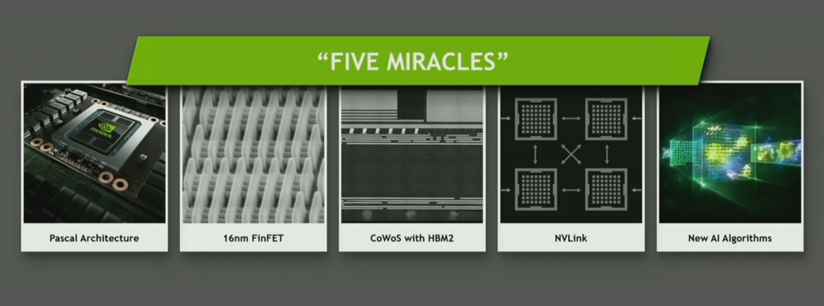 אצל NVIDIA כמו תמיד, אי אפשר לדבר על הצורך בכח עיבוד אדיר מבלי להציג את הסחורה. מנכ"ל החברה מנצל את המעמד כדי להציג את הילד אותו היא מגדלת כבר כמה שנים בהשקעה חסרת תקדים. הכירו את ה-Tesla P100, המעבד הגרפי החזק ביותר בעולם שמהווה את הבסיס לכל הליבות הגרפיות של החברה בשנים הקרובות.