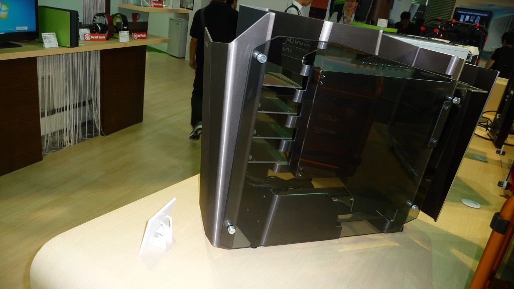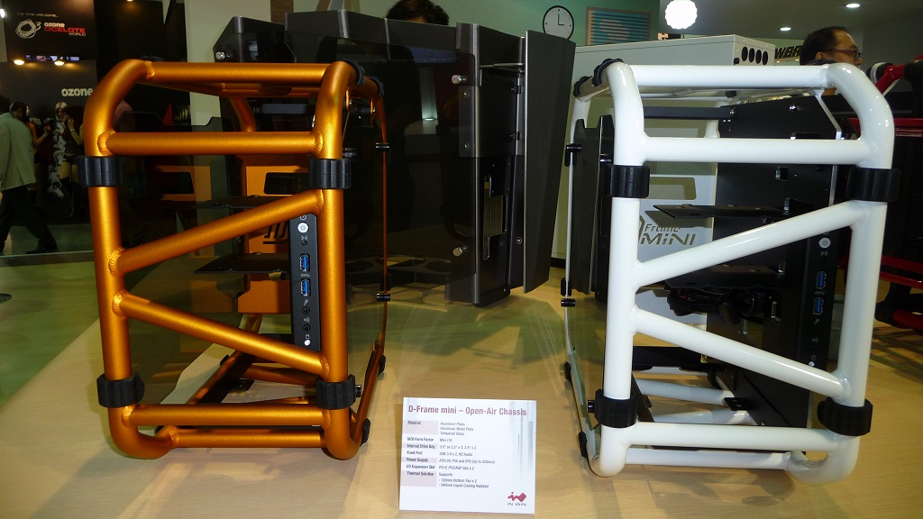 לקינוח, מציגה IN WIN קונספט למארז שאפתני המיועד למערכות מחשב קטנות שמבוססות על לוחות אם בתקן MITX – מארז ה-H-Frame. כאן IN WIN לא חסכה בדבר והיא מדגימה שימוש במערכת קירור מים למעבד ולזיכרון במארז שנראה קטן מתיק נשיאה.