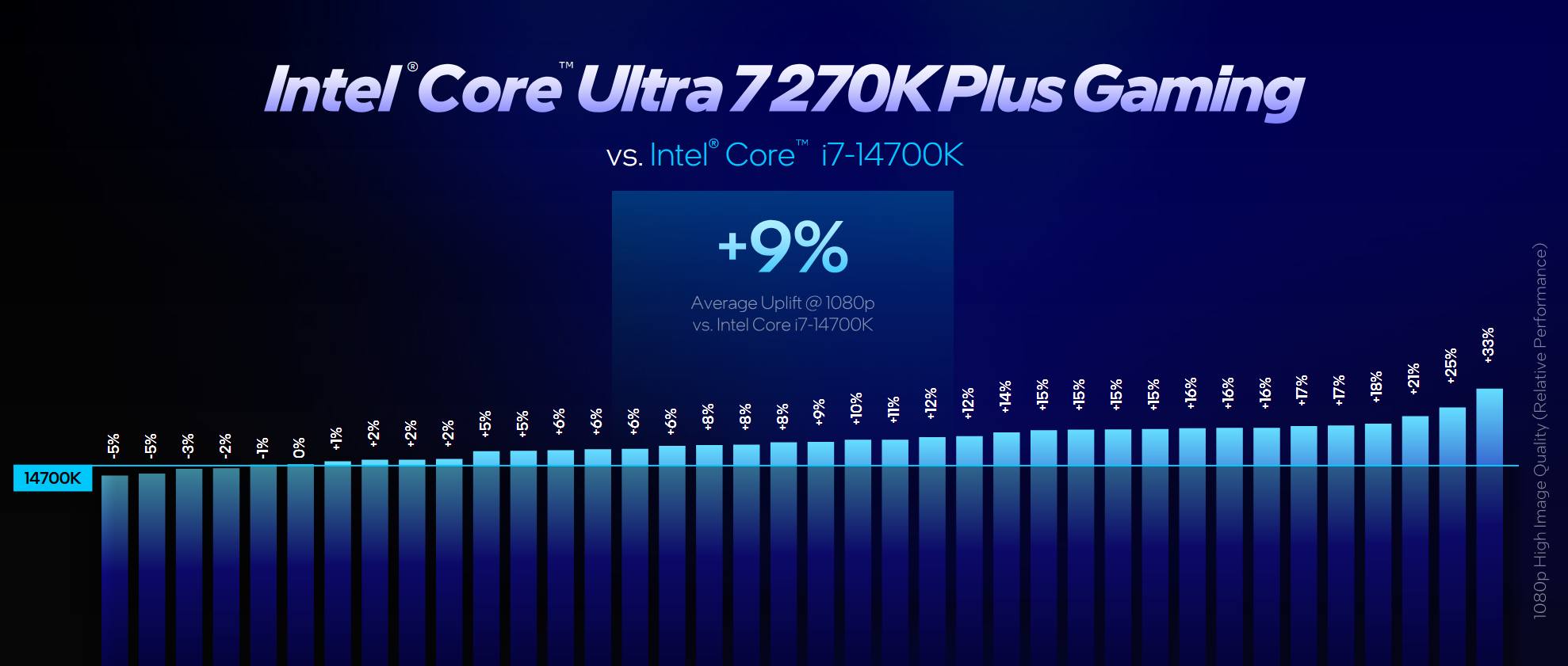 אין צורך לזנק מהכיסא. חשוב להבין שאנחנו בתקופת שיפור מדודה. גם לאינטל חשוב להבהיר את זה עם מבחני הביצועים הפנימיים שלה שמראים ממוצע שיפור של 9 אחוזים לעומת Core i7 14700K, מעבד שהושק בסוף 2023.