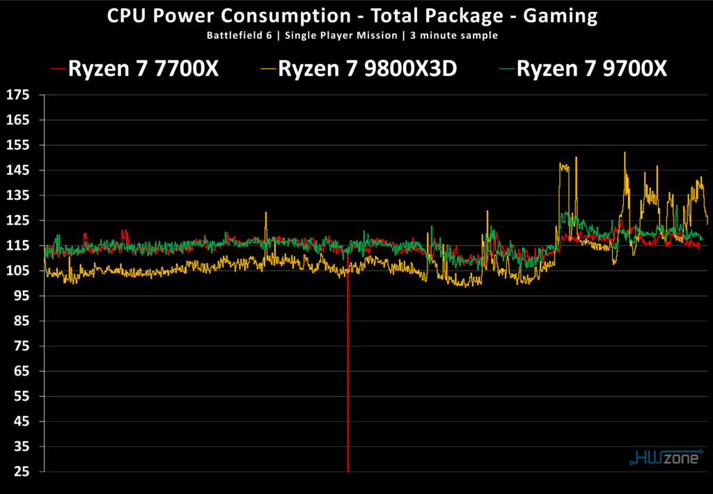 לצורך השוואה, כך זה נראה במעבדי AMD שבחנו. איך להגיד את זה בצורה פשוטה, כשזה מגיע ליעילות חשמלית בגיימינג, ה-9800X3D עדיין משאיר לאינטל אבק. עם צריכת חשמל של כ-110W וביצועים גבוהים משמעותית בגיימינג, הוא צפוי להשאר כאב הראש שלה, לפחות עד הדור הבא.