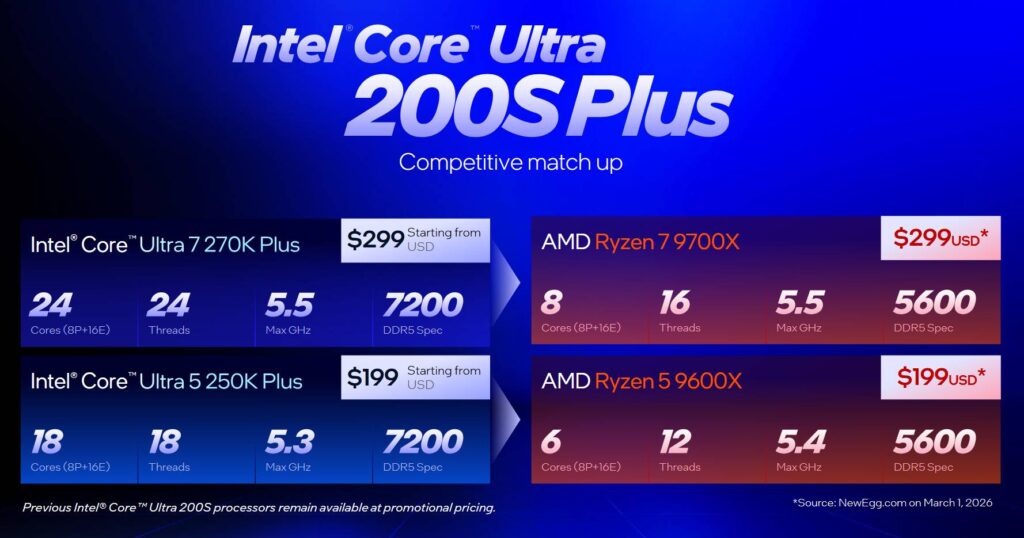 משמעות הדבר היא שבאופן מיידי ה-Core Ultra 7 265K וה-Core Ultra 5 245K הופכים ללא רלונטיים, שכן הם יקרים משמעותית ומסומנים כמעבדי "דור קודם" איטיים יותר.