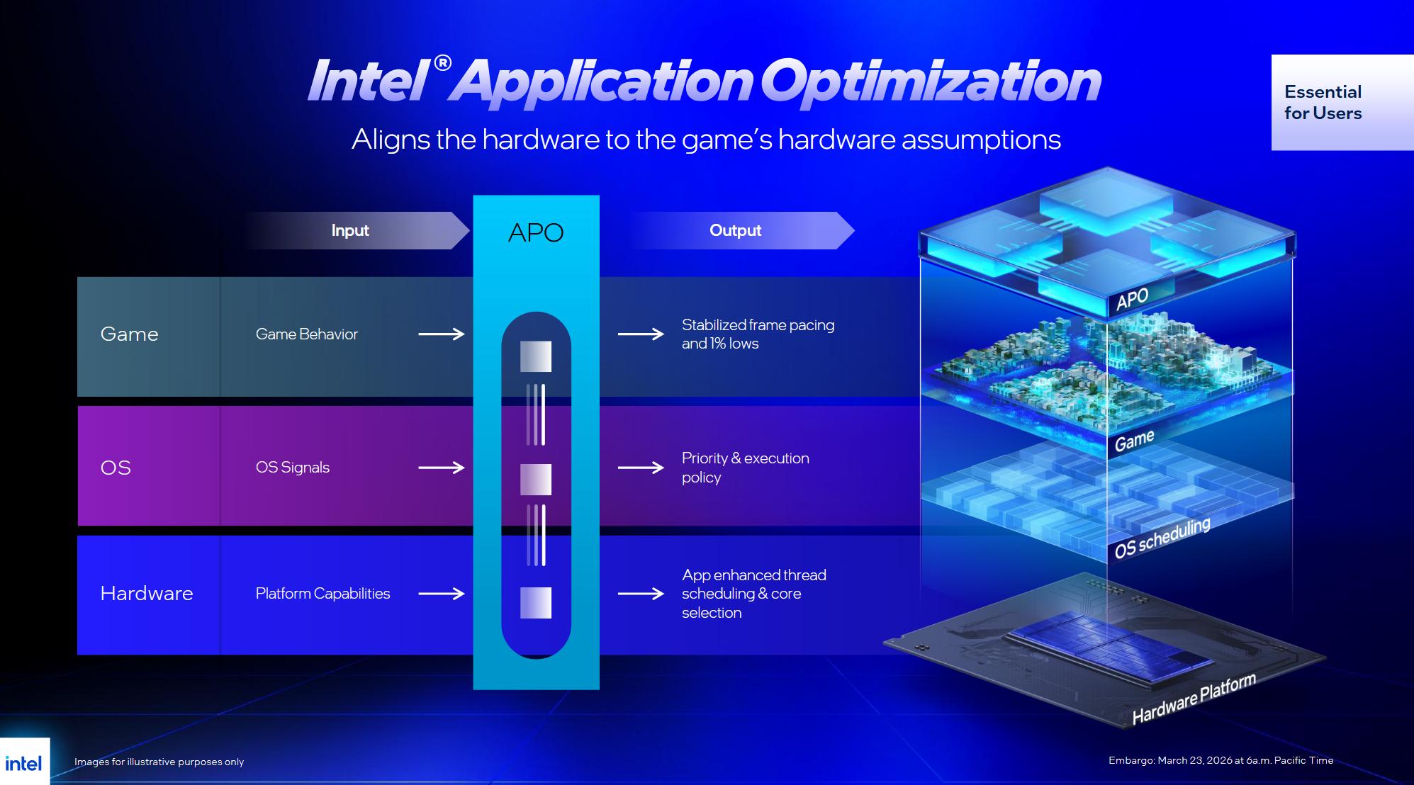 כחלק מחומרי הקידום לסדרת הריענון הזאת אינטל שמה דגש על אופטימיזציה של תהליכים עם המעבדים ההיברידיים החדשים שלה, כדי לוודא שהעומס נופל בצורה היעילה ביותר בין ליבות הביצועים הגדולות לבין ליבות היעילות הקטנות יותר.