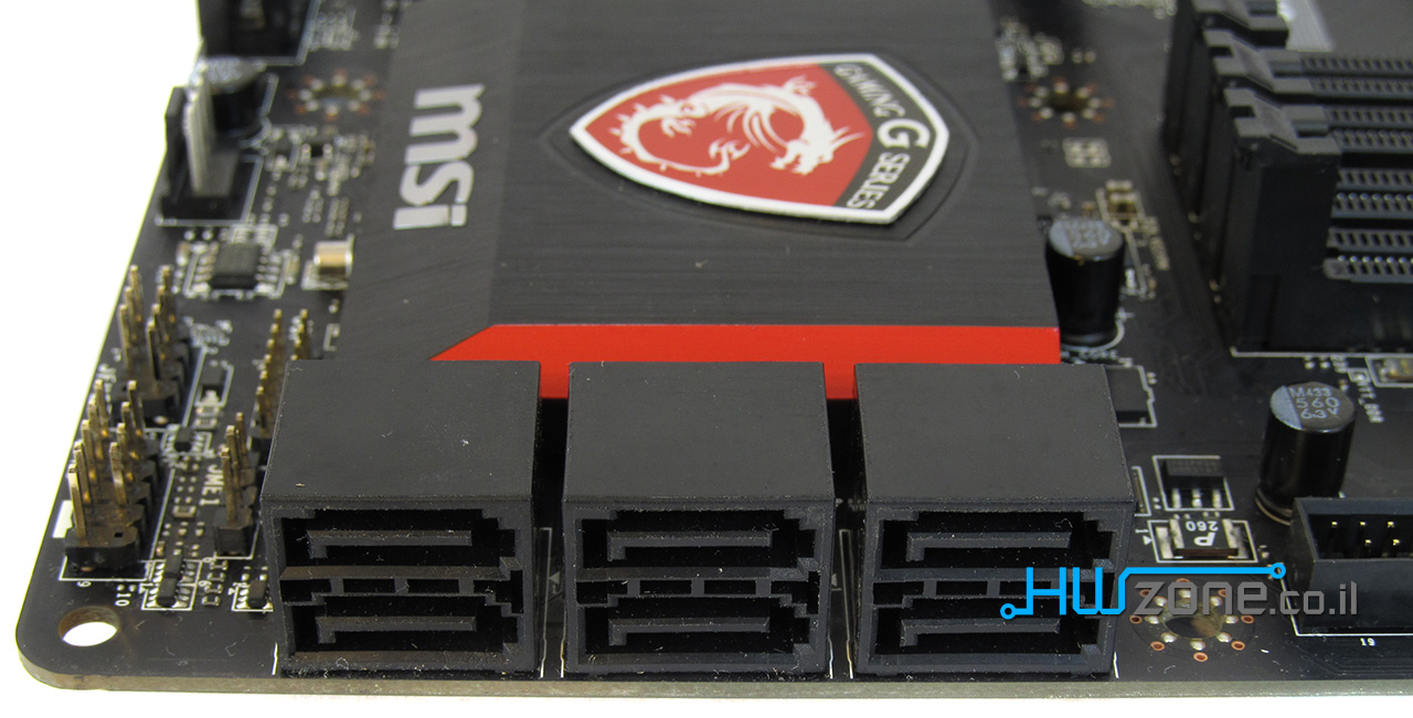 בצד לוח האם ישנם שישה ממשקי SATA3 המגיעים מערכת השבבים. מדובר בהיצע סטנדרטי למדי שאליו אנו רגילים עוד מדור Z87. בלוח אם זה לא נמצא ממשק SATA Express לכוננים בתעבורה מהירה יותר.