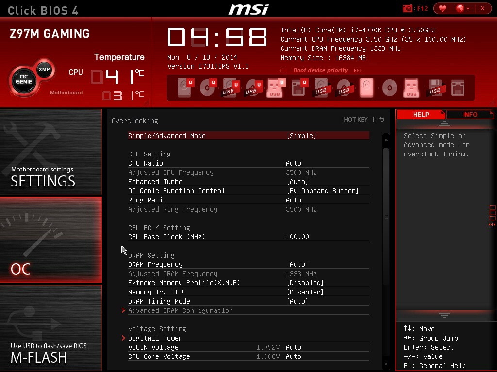בשונה מאסוס או גיגהבייט, MSI דבקה בעיצוב הביוס הגרפי שלה מזה כמה שנים. אני מסכים עם החלטת MSI בדבר. מדובר בביוס פשוט, נח לניווט ונעים לעיניים.