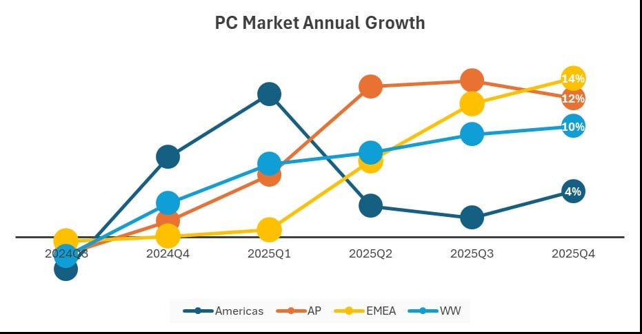 מי שהספיד את המחשב האישי לטובת עידן ה"פוסט-פי-סי" והסמארטפונים, נאלץ לחשב מסלול מחדש אל מול נתוני סיום שנת 2025. השוק העולמי הפגין חיוניות מפתיעה, כאשר הרבעון הרביעי לבדו רשם זינוק של 9.6% במשלוחים, שהסתכמו ב-76.4 מיליון יחידות. עם זאת, ניתוח מעמיק של המגמות חושף כי לא מדובר רק בהתלהבות טכנולוגית או בעונת חגים מוצלחת, אלא בתגובת שרשרת ללחצים כלכליים ותעשייתיים שצפויים לשנות את פני החומרה בשנה הקרובה. הצרכנים, שהריחו את ההתייקרויות שבדרך, הקדימו רכישות ויצרו גל ביקוש מלאכותי בחלקו, שנועד להקדים תרופה למכה.