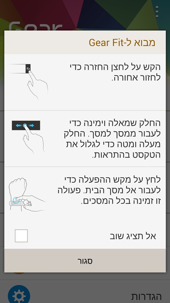 אבל בואו ונתחיל מההתחלה. אם קראתם את הביקורת על הדור הראשון של הגיר, הממשק לא יפתיע אתכם. מדובר באותו ממשק כמעט באופן גורף, כאשר מה שהשתנה זה שיטת הניווט. בכל תפריט יש חץ "אחורה" שמאפשר לחזור למסך הקודם, שזאת מן הסתם שיטה הרבה יותר אינטואיטיבית מאשר גלילה למעלה או הצידה או מה שלא היה קודם.
