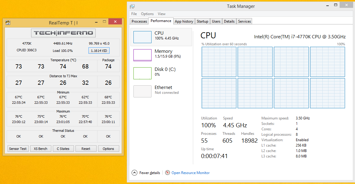 במעבדת האתר בדיקת המהרה ללוח אם מתבצעת בצורה פשוטה. אנחנו יודעים שה-Core i7 4770K מסוגל לפעול בתדר של 4500 מגה-הרץ תחת מתח פעולה נמוך במיוחד, בואו ונראה כמה מהפוטנציאל שלו לוח אם יודע למצות.