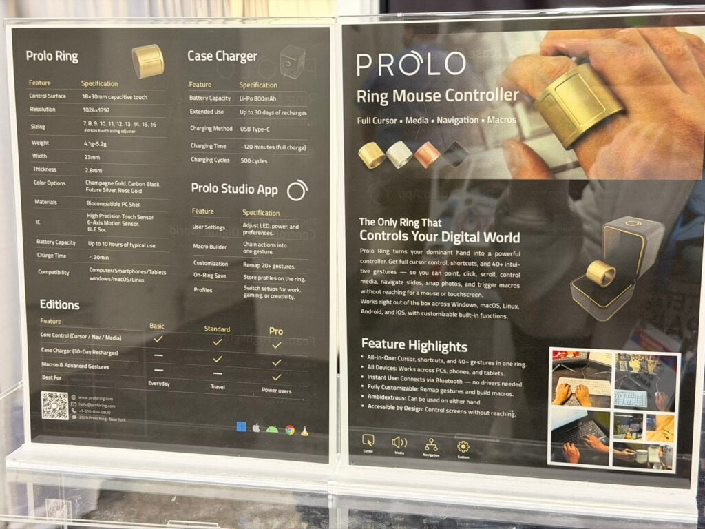 אם יש משהו שלא השתנה כמעט ב-40 השנים האחרונות, זה עכבר המחשב. אנחנו עדיין גוררים "לבנה" מפלסטיק על השולחן, והיד שלנו עדיין משלמת את המחיר בדמות כאבים בפרק כף היד (Carpal Tunnel). בדוכן הקטן של Prolo מצאנו את מה שאולי יהיה הפתרון לדור הנוודים הדיגיטליים: בקר שליטה בצורת טבעת, שמבטל את הצורך במשטח ישר ומאפשר לשלוט במחשב מכל מקום – אפילו כשהיד בכיס.