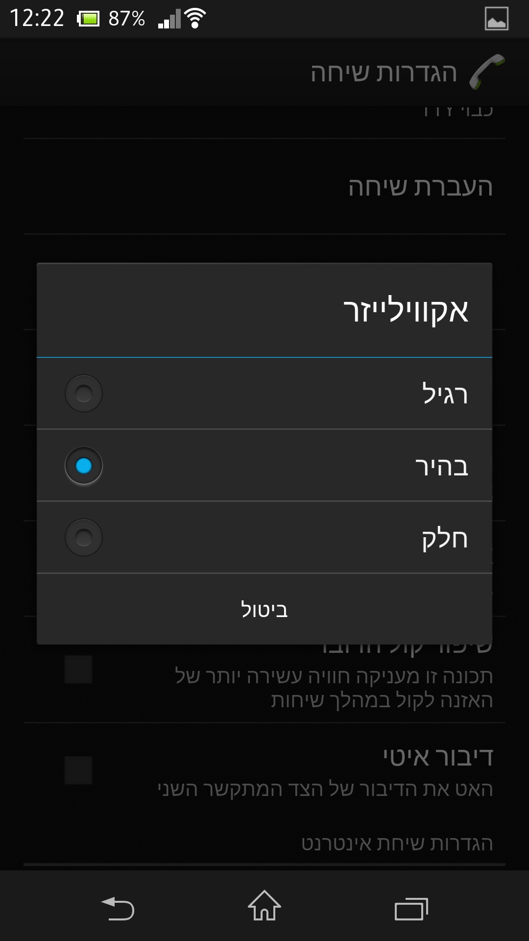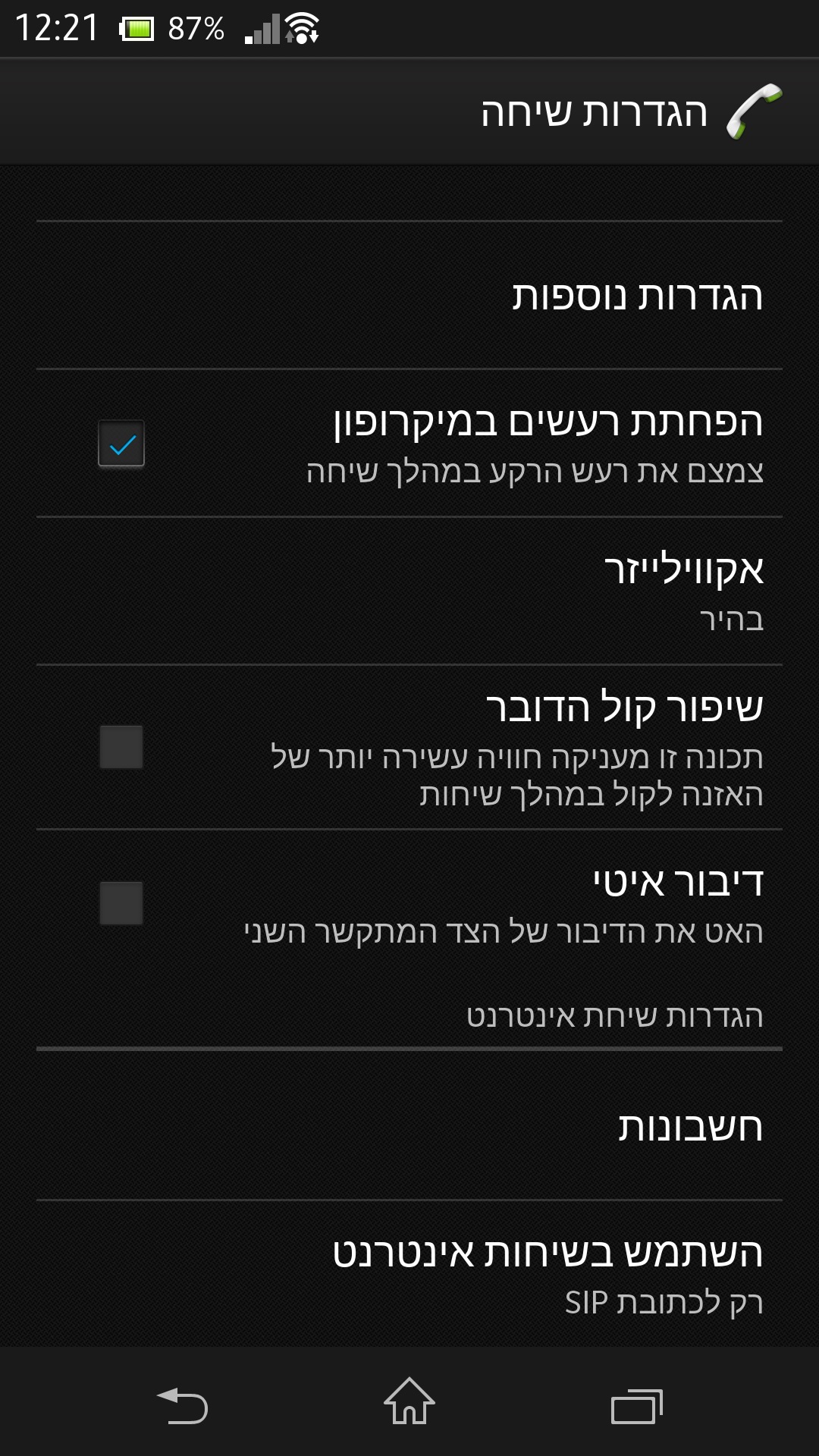 איכות השיחה היא טובה ובעזרת טכנולוגיית ביטול רעשים שמתבצעת דרך שני המיקרופונים (אחד רגיל ואחד של המצלמה) גם הצד השני של השיחה יישמע אתכם ללא בעיה. במסך ההגדרות ניתן להפעיל הגדרה בשם "שיפור קול הדובר" שאמורה לשנות הגדרות איקוולייזר כדי שהצד השני יישמע בצורה יותר איכותית. לצערי האופציה הזאת יותר הפריעה לאיכות מאשר הוסיפה, כאשר התווסף רעש רקע סינטטי ומוזר כאשר הצד השני דיבר. ניתן גם להפעיל הגדרות איקוולייזר נוספות לקול השיחה אך לא הרגשתי בשינוי דרמטי מדי בשימושן. אופציה מעניינת, היא האופציה להאט את הדיבור של הצד השני, אופציה שיכולה להתאים אולי לאנשים עם בעיות שמיעה כאלו או אחרות. נקודה טובה לסוני.
