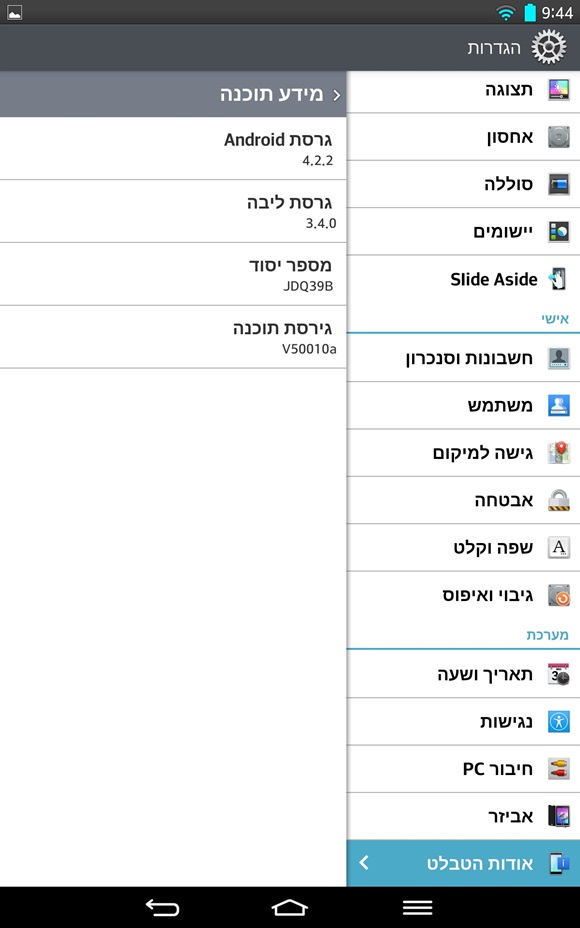 מערכת הפעלה: אנדרואיד 4.2.2 Jelly Bean
