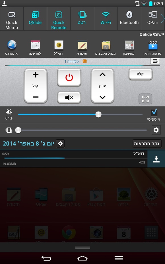 אפליקציית השלט הרחוק עדיין כאן ועדיין מצויינת. בטאבלט היא מרגישה גם קצת יותר בבית, כאשר סביר להניח שהטאבלט יימצא רוב הזמן באיזור של הטלוויזיה שלכם גם ככה. כמו ב-G2, היא מאפשרת שליטה נוחה מאוד במערכת הבידור שלכם ומהווה אחלה פתרון לשלטים למיניהם.