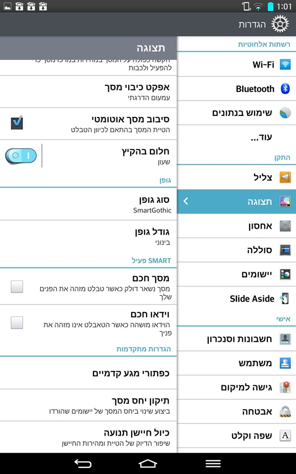 הממשק של ה-G-Pad פחות או יותר זהה למה שמגיע עם ה-G2. וכשאני אומר פחות או יותר, אני מתכוון יותר. יש לו אותו מראה, אותן תכונות ואותן בעיות, למרות שחלק מהתכונות שלו דווקא מסתדרות יותר טוב בטאבלט מאשר בסמארטפון.