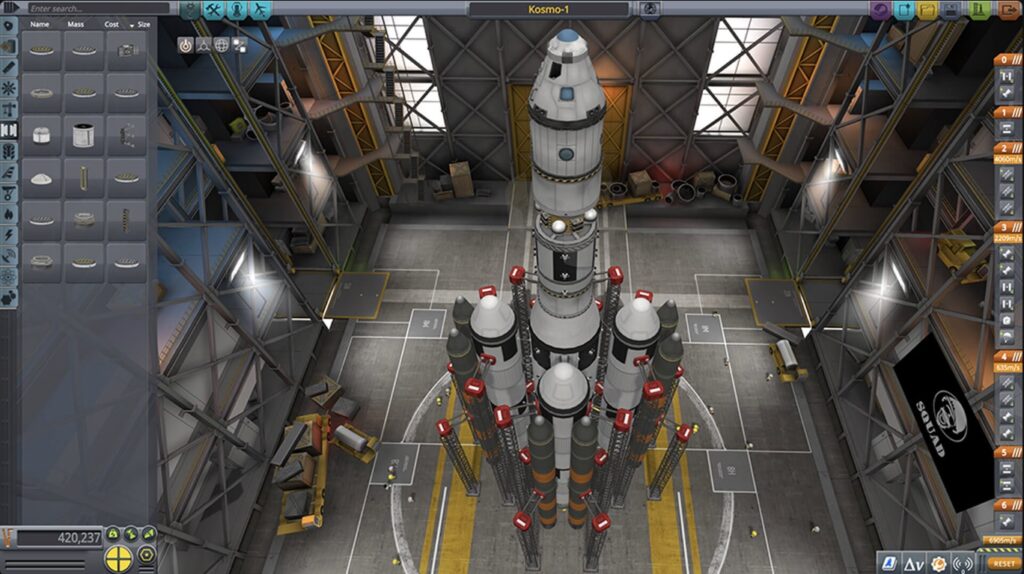 הראשון ברשימה הוא כותר סימולציה ייחודי ופופולרי בשם Kerbal Space Program, אשר תחת מעטה תמים משהו של עולם משחק עמוס ביצורים ירוקים קטנים עם עיניים גדולות ובולטות מסתיר מנוע פיזיקלי מתוחכם המסוגל לדמות באופן מעמיק ומדוייק אפקטים של טיסות אל החלל ואת הכלים המשמשים לכך בעולם האמיתי – עם מצבי קריירה ו-Sandbox ממכרים ומספר גדול של מודים מהקהילה שהופכים אותו למגוון ומתקדם עוד יותר.
